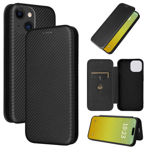 ROYALMONSTER iPhone 15 カーボンファイバー手帳型ケース BK RM-5375BK