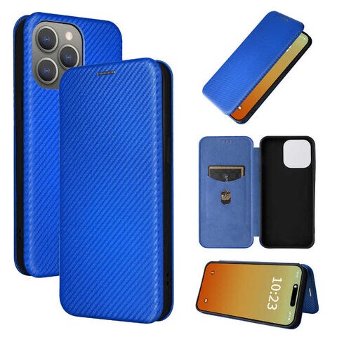 ROYALMONSTER iPhone 15 Pro Max カーボンファイバー手帳型ケース BL RM-5375PM-BL