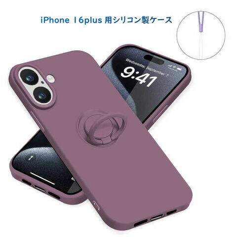 ROYALMONSTER iPhone 16 Plus シリコン製ケース リング付 YE RM-16PLSili-PU