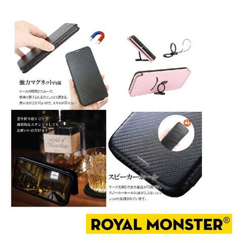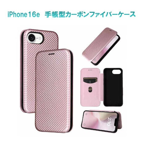 ROYALMONSTER iPhone 16e カーボンファイバー手帳型ケース PK RM-5300-16ePK