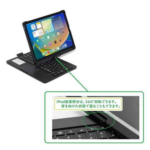 iPad10.9、A16用の360°回転タッチパッド付キーボード(ケース一体型)