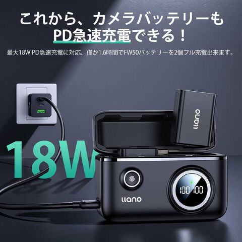 ●皆様に信頼されるブランドを構築、多重安全保護システムllanoは多層防御シスム技術を10年以上のハードウェア専門知識と融合し、過充電、過電圧、過電流、過放電、ショートを防止する機能を搭載、PSEなどの認証もクリアし、安心してご利用いただけます。充電出力:9V/2Aサイズ:10.6×7.2×4.5cm適合モデル:NP-FW50ポート:type-c素材:プラスチックABS重さ:約166g保証期間:1年間