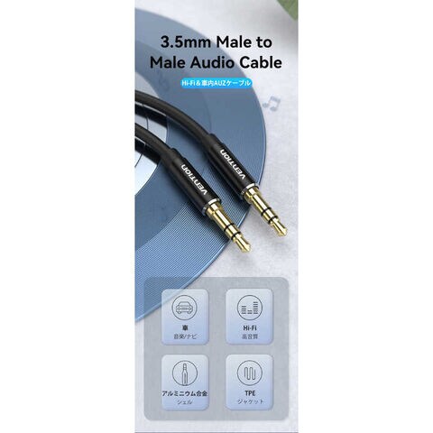 ブランド:VENTION色:ブラックインターフェース:3.5mm オスインターフェース技術:金メッキコンダクター:エナメル銅シェル:アルミニウム合金 ジャケット素材:TPEAWG:29AWGOD:3.5mm長さ:1m保証:1年パッケージ:PE袋
