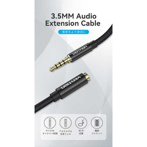 VENTION オーディオ延長ケーブル 3.5mm ステレオミニプラグ コットン編み 2.0m [2.0m] BH4605