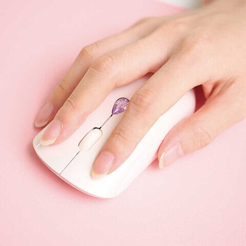 約4カラットを超える大粒のキュービックジルコニアをあしらった、贅沢仕様の美しいマウスです。デザイン性だけでなく機能性も兼ね備えたワイヤレスマウスで、仕事のモチベーションもアップ!