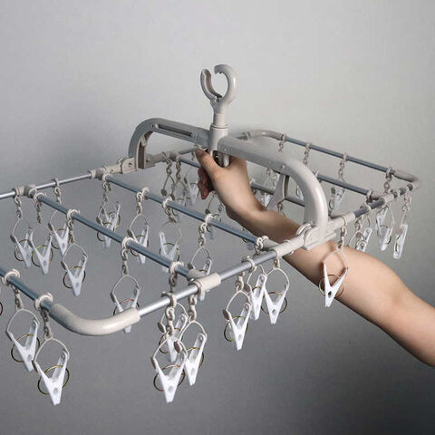 ドアなどに掛けられるフック付きで、室内干しにも便利です。