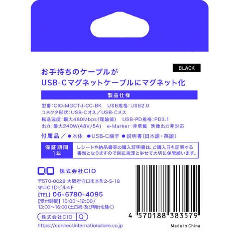 CIO USB-C マグネット変換アダプタ ストレート ブラック CIOMGCTICCBK