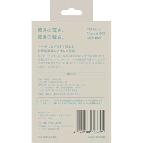 CIO Mate Charger 003 20W2C Slim カームブルー MATE-CH003-CBL