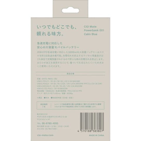 CIO Mate Powerbank 001 20W2C1A カームブルー MATE-PB001-CBL