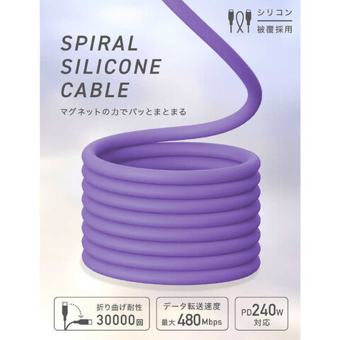 CIO スパイラルシリコンケーブル CtoC 2m(パープル) CIO-SLSC30000-CC2-PP