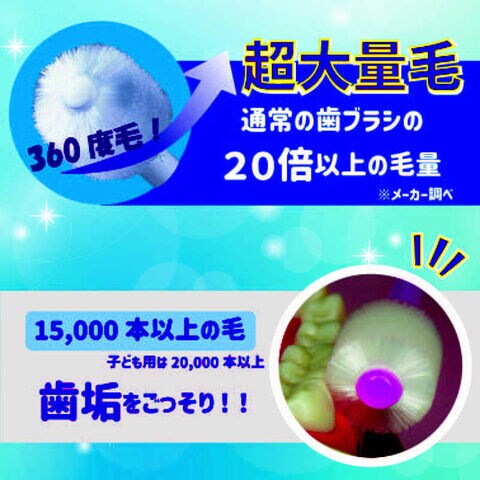 20000本以上の0.064mm高密度大量毛が歯垢をしっかり落し、同時に吸着するので歯に歯垢を残さない。
