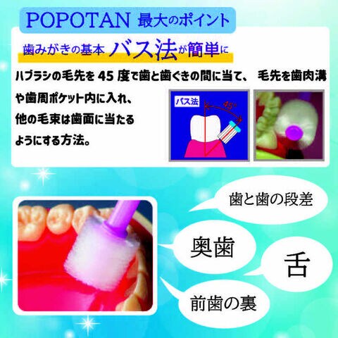 ブラシ毛先端丸加工により優しいみがき心地。歯みがきが嫌いなお子様でも「楽しくみがける」と大人気。