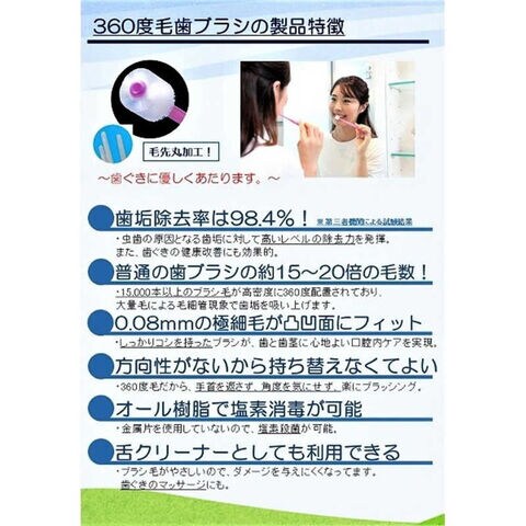●360度毛なので、角度を気にせず、持ち替えなくてもいいので簡単に磨ける。