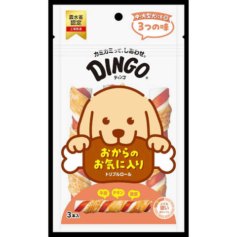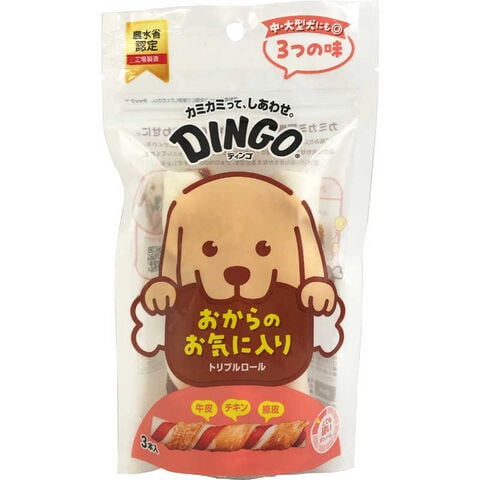 ・牛皮・豚皮・チキンをくるくると巻きつけた、3つの味が楽しめるガムです。