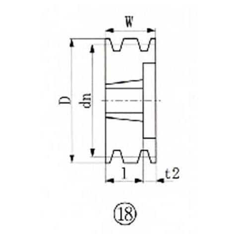 データム径(mm):180、溝数:3、図面番号:18、適用ブッシング:2517、質量(kg):6.8