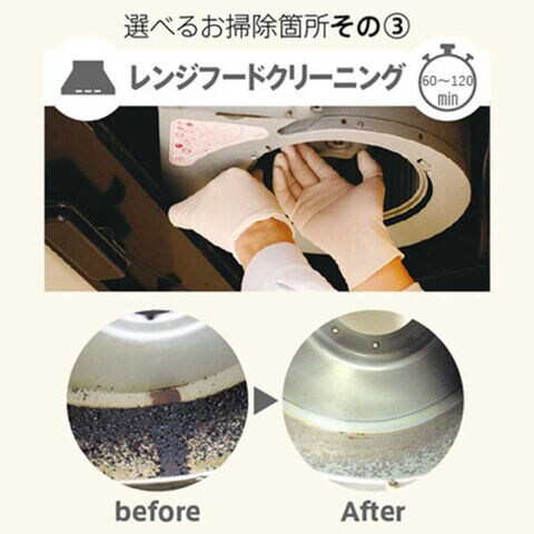レンジフード汚れチェック、冷蔵庫の表面拭き、電球交換など。