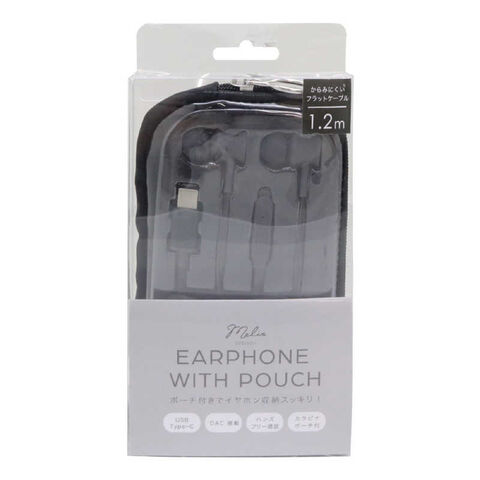 インプリンク キルティングポーチ付きType-C有線イヤホン BK IMEWP01BK
