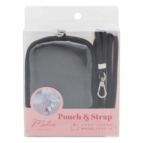 ストラップ、キルティングポーチ、スマホが取り付けられるアダプターが一つになったマルチウェイアイテム。
