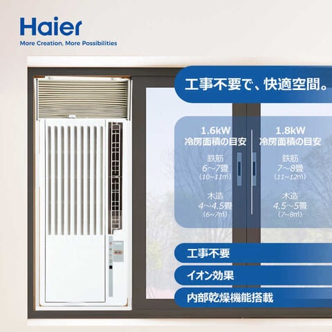 ハイアール 窓用エアコン 冷房専用 7~8畳(鉄筋) /4.5~5畳(木造) ノンドレン ホワイト JA-W18A-W