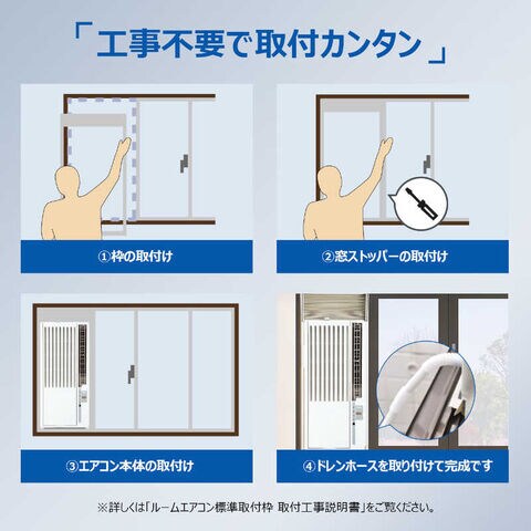 壁に穴を開ける必要もなく、室外機を置くスペースがなくても大丈夫。移動や引っ越しの際の負担も軽減できます。また、設置可能な窓の高さは777mm~2,005mmまでと、多くの住宅に対応しています※2