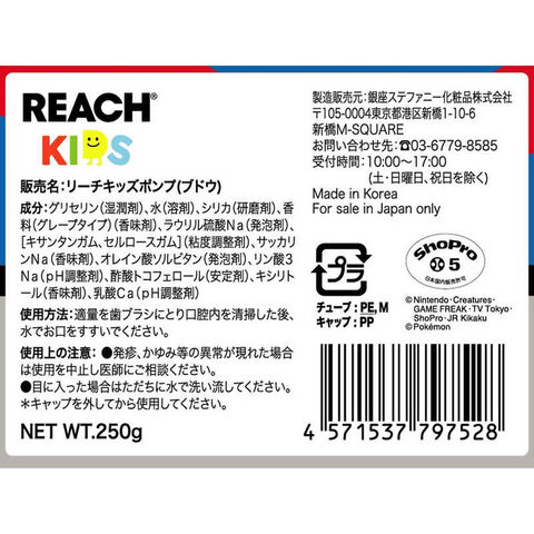 銀座ステファニー リーチ キッズポンプ歯みがき ぶどう香味 250g