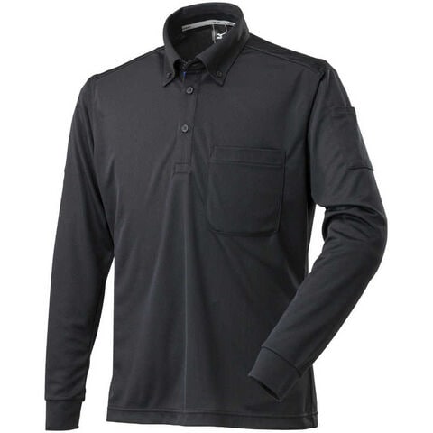 ミズノ ナビドライワークボタンダウンポロシャツ(長袖)[ユニセックス] XL 09:ブラック×ブルー F2JA218509