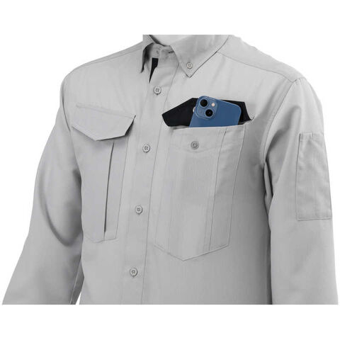 手帳やスマホが入る両胸フラップポケット付きシャツ