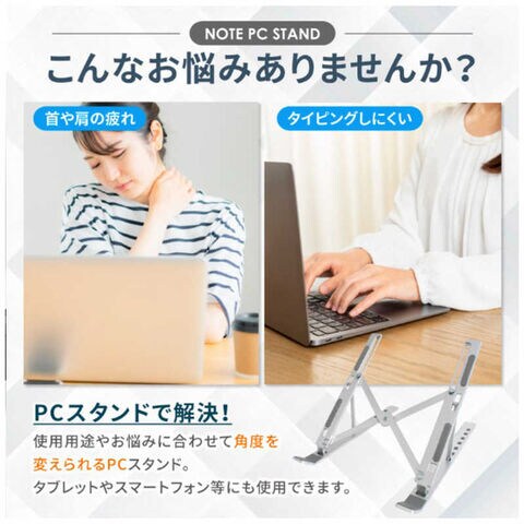 shizukawill ノートパソコンスタンド PCスタンド タブレットスタンド スマホスタンド 卓上 折リタタミ 角度調整 シルバー ACPCS01SRのレビュー