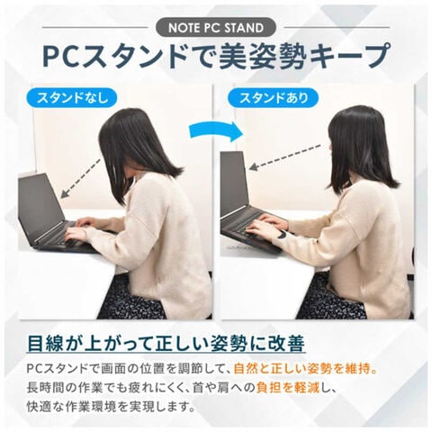 お好みの角度や高さでノートパソコンやタブレットを設置可能!