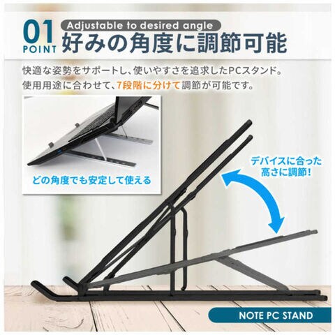 仕様1:[対応機種]ノートパソコン / タブレットPC / スマホ[重量]216g[角度調整]7段階