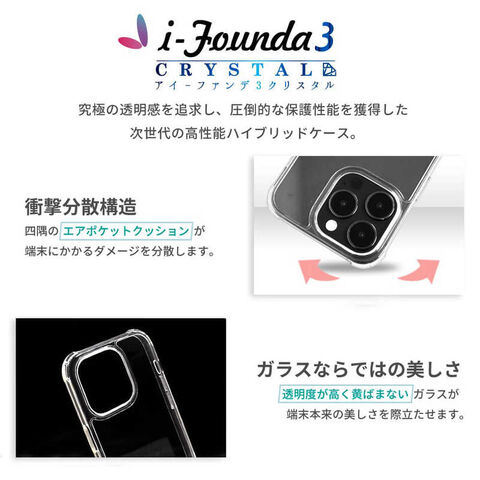 仕様1:ケースタイプ:i-Founda3 Crystal ケース素 材:TPU(熱可塑性ポリウレタン) 強化ガラス