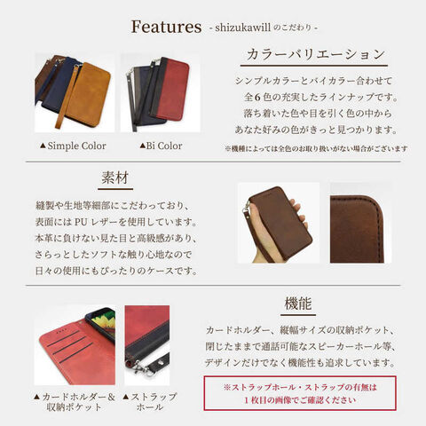 仕様1:ケースタイプ:Leather 手帳型ケース付属品:専用フック付ストラップ素 材:TPU(熱可塑性ポリウレタン) PUレザー(ポリウレタン樹脂)仕 様:耐衝撃・衝撃吸収 ストラップホール(上下2カ所) カードフォルダ 収納ポケット マグネット留め スタンド機能