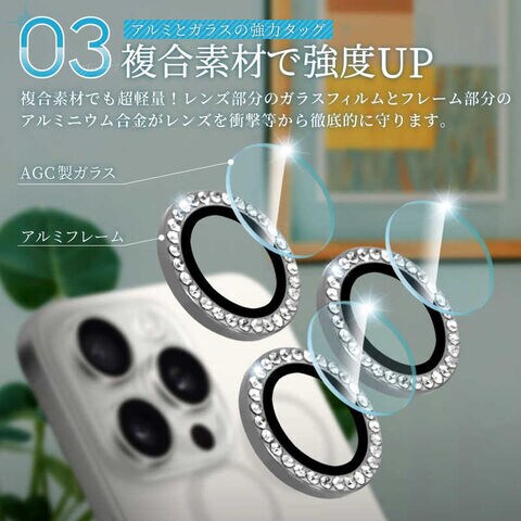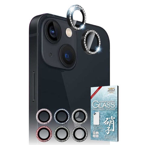 shizukawill iPhone13 カメラレンズ キラキラ ラインストーン ガラス 保護フィルム ブラック APIP13RC2BGL