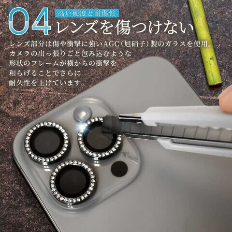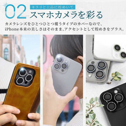 shizukawill iPhone16 Pro カメラレンズ 保護 レンズカバー キラキラ ラインストーン ガラスフィルム 保護フィルム shizukawill(シズカウィル) シルバー APIP16PRC2SIGL