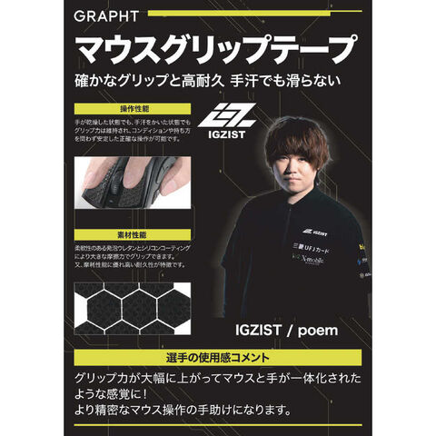 (コンセプト)GRAPHT マウスグリップをマウスに貼り付けることで、通常のマウス表面では実現できないほどの滑り止め性能が得られます。