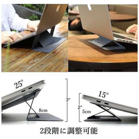 仕様1:[対応端末]11.6インチ~16インチの画面サイズのノートパソコン※Surface Proタイプには対応しておりません。[注意事項]本体のサイズは22.4cm×17cmなので、これより大きく平らな背面のタブレットにも使用できます。できる限りノートPCのヒンジ側にMOFTを貼り付けていただくとより安定しやすくなります。