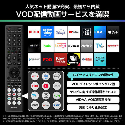 ●人気の動画配信アプリが初めから内蔵!お手軽システム「VIDAA OS」