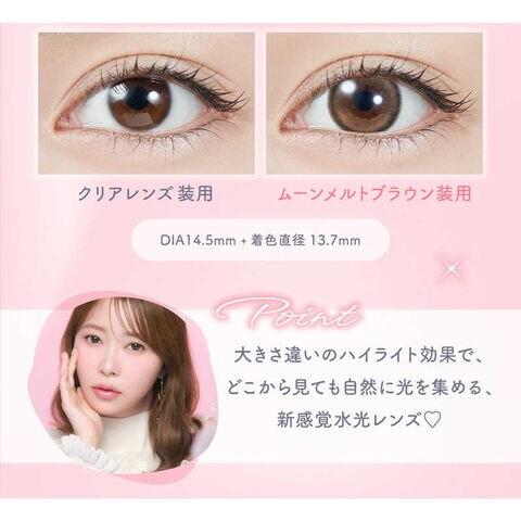 水分を多く含むやわらかい素材で、瞳に違和感なく快適なつけ心地です。