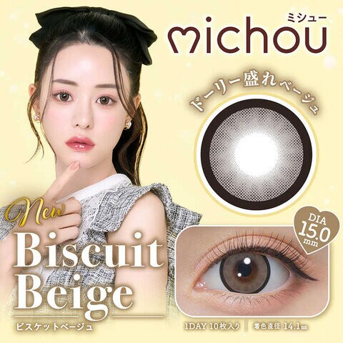 Pia (度あり/-3.25) michou(ミシュー) ビスケットベージュ (BC8.6/DIA15.0) 10枚入 カラコン