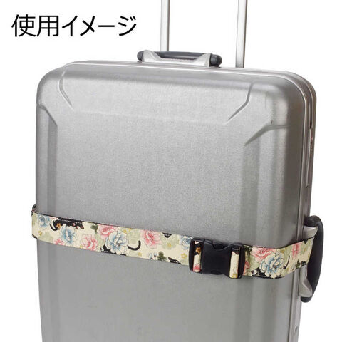 FUNS 和柄スーツケースベルト 猫×牡丹 ホワイト FS-164630WH