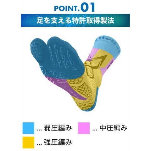 解剖学的アプローチでしたグリップ力は従来ソックスの1.6倍!さらにSEK抗菌防臭加工の糸を採用。