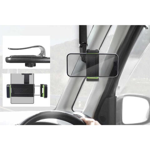 「フレキシブル スマホホルダー」は、車のサンバイザーに簡単取り付けできる便利アイテム。
