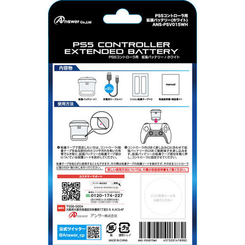 アンサー PS5コントローラ用 拡張バッテリー ANS-PSV015WH ホワイト