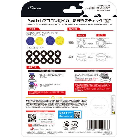 アンサー Switchプロコン用イカしたFPSスティック 狙(インキイエロー&インキバイオレット)