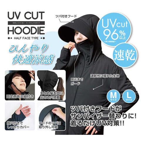 【2026年04月15日発売予定】トレードワン UVカットパーカーハーフフェイスタイプ/BK Lサイズ ブラック 31009