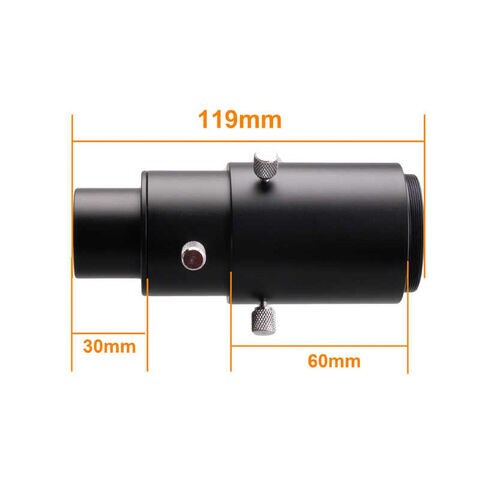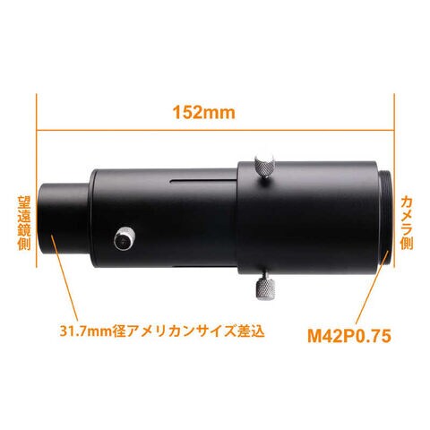 スリーブ側を31.7mm接眼部に挿入し、内部に31.7mmアイピース、カメラ側はTリング(別途ご用意ください)に接続可能です。