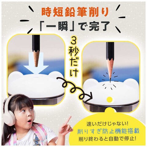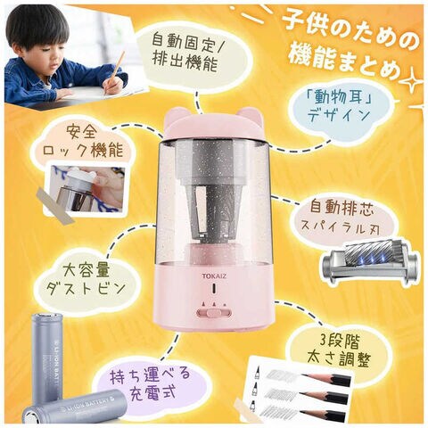 完全自動でたった3秒!自動停止機能搭載、Type-C充電式で電池不要。折れ芯除去機能や3段階の太さ調節で無駄削りを防止。おしゃれなアニマル風デザインで、男の子・女の子にぴったりの子ども用文房具。入学祝いはもちろん、クリスマスや誕生日のギフトにも最適です!