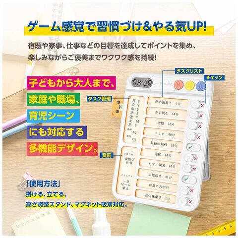 やることリストを確認しながら作業できるので、忘れ物やミスを防止。学校準備や職場での業務管理に最適です。