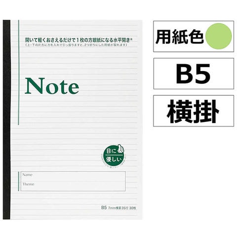 中村印刷所 水平開き 目に優しいノート B5 横罫 7mm 60頁 30枚 用紙色 緑 40028