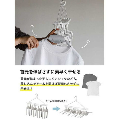 首元が詰まった干しにくいシャツなども、差し込んでアームを開けば型崩れさせずに干せます。